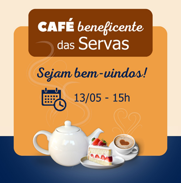 Convidamos a comunidade em geral para mais um momento de comunhão, mas também de solidariedade. O CAFÉ BENEFICENTE DAS SERVAS. Na próxima terça, dia 13 de maio, às 15h.