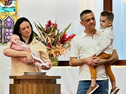 A menina Lívia foi batizada no culto do dia 07 de abril. Ela é filha da Duane Rodrigues e do Fernando Artmann. Pastor Nikolas fez o batizado, pois a Duane trabalha no colégio Concórdia e dali surgiu o interesse de buscar essa benção de Deus. O irmãozinho Léo também foi batizado em nossa congregação.