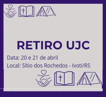 os dias 20 e 21, sob o tema: O JOVEM E SEUS RELACIONAMENTOS, acontecerá mais um Retiro de Jovens da UJC (União Juvenil Cristo).