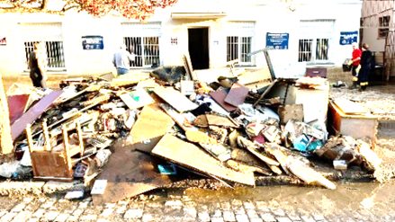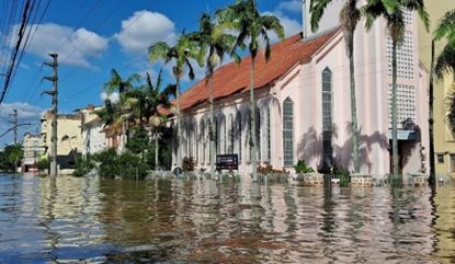 No dia 03 de maio as águas também chegaram junto a estrutura de nossa Comunidade. A secretaria, os escritórios, o salão e o templo sofreram alagamentos. Na esquina da Roosevelt com a Pátria a profundidade chegou a 1,80m. Na Pátria, em frente a secretaria 1,40m.