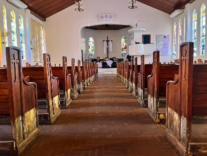 Ainda temos muito a fazer! Voltamos a usar o templo, mas precisamos reformar os bancos e o parquet. O piso ficou bastante desnivelado! O desafio é enorme! Mas, juntos, firmes, perseverantes reconstruiremos todas as partes.