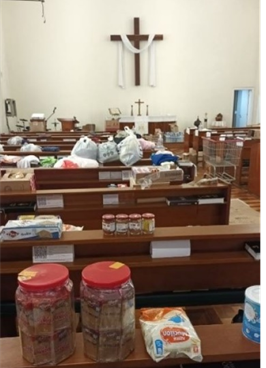Enquanto alguns templos estavam cheios de barro e sujeira, outros templos e salões estavam cheios de doações e gente pronta para preparar alimentos, separar roupas, ajudar nas limpezas.