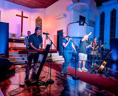 Nossa igreja estava ornamentada e com uma iluminação diferenciada no dia 03 de março, quando tivemos um momento de adoração dirigido pelo Movimento “Presence”. Apesar da linguagem e estilos contemporâneos o tema da mensagem era a Palavra atemporal com o a MENSAGEM DA CRUZ. Tivemos um excelente participação de pessoas de todas as idades. Mais uma bela opção de encontro e edificação no templo de nossa Comunidade.