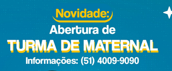 Novidades têm sido apresentadas. Uma delas é o maternal. Interessados, busquem informações! Outra possibilidade é o turno inverso para alunos do 5º ao 8º ano. O colégio oferece oficinas que exploram interesses diversos e incentivam a participação ativa dos alunos, promovendo a colaboração e a criatividade. Conheça mais da proposta do Turno e tire suas dúvidas pelo Whatsapp: (51) 4009-9090.