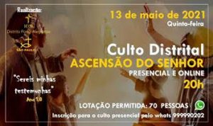 Este é um culto distrital, a ser celebrado nas dependências da Comunidade São Paulo, tanto na forma presencial como on-line.