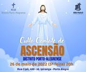 Comunicamos e convidamos a todos para o Culto especial e distrital que ocorrerá hoje, dia 26 de maio (quinta-feira às 20h), na Comunidade São Paulo de Porto Alegre (rua Cipó, 450). Culto de Ascensão. O coral da Comunidade participará deste momento.