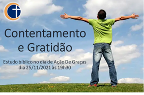 Participem nesta quinta (dia 25/11), de um momento de estudo bíblico com louvores e análise do tema: CONTENTAMENTO E GRATIDÃO. Pelo Facebook e posteriormente pelo YouTube.